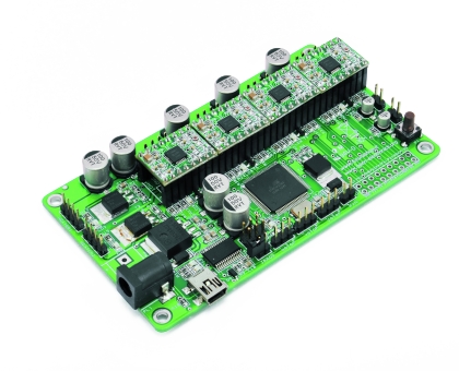 Regarding the control of the stepper-motors: the default drivers configuration is 1/16 of a step: by cutting the three thin tracks on the bottom, those connecting two by two the jumpers’ pitches, you can solder the standard pin-strips to operate the manual selection of the steps through 2,54 mm jumpers. This operation can be made ​​for one or more drivers depending on the needs.