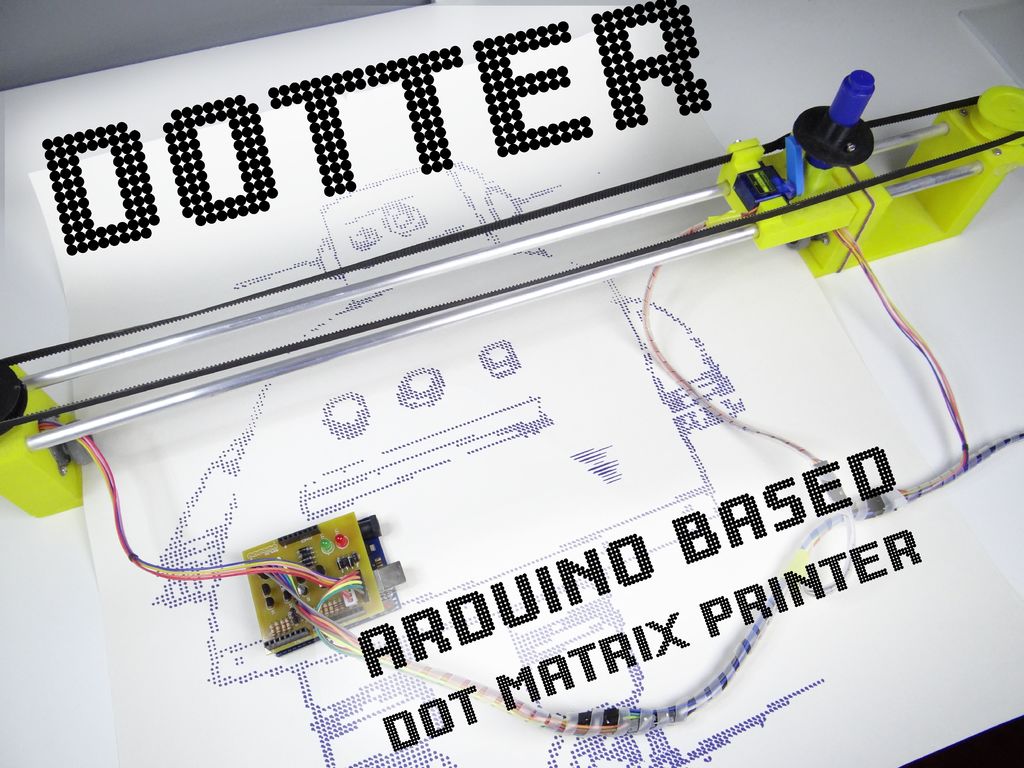 Dotter is a huge dot matrix printer based on Arduino. Most of the parts are 3D printed, there are also 28BYJ48 stepper motors (the cheapest stepper motors you can find) and some basic components.