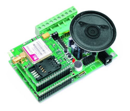 That’s why – and also since we love things that speak (see our Voice shield for Arduino) – we decided to design a remote alarm, with text to speech capabilities and able to send DTMF commands (which allows quick and easy remote configuration).