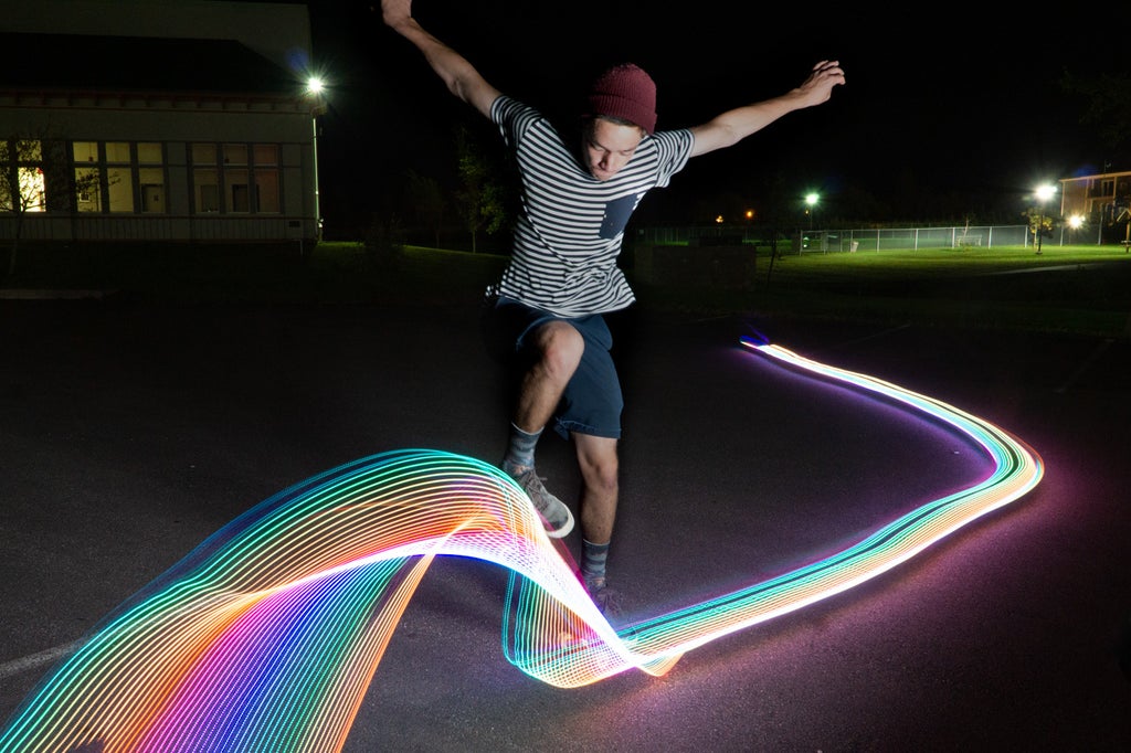 The “light painting” consists in photographing moving light sources and thus obtaining very particular and creative images; in this project we see how to build a bright skateboard for this purpose.