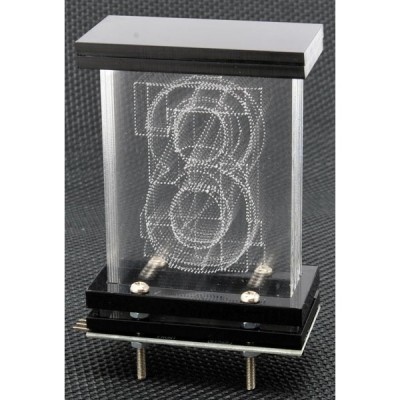 This kit allows you to create a single display with 7 segments that recall of the fascinating Nixie tubes. It is composed of 10 LASER engraved plexiglass panels with the numbers from 0 to 9, three plexiglass frames (upper, middle and lower) and an electronic board with 20 miniature Neopixel LEDs (2.4×2.7×1.1 mm). Each panel is illuminated by two Neopixel LEDs on the electronic board and can be managed via an Arduino or compatible Arduino (