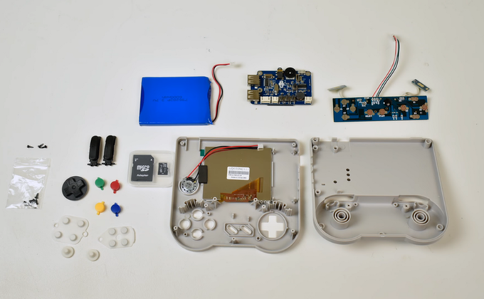 The kit provides everything you need including battery, 3.5 inch screen, integrated game controller and casing to create your very own portable retro gaming system. Small gaming system includes TV Output an ability to enjoy for player games.